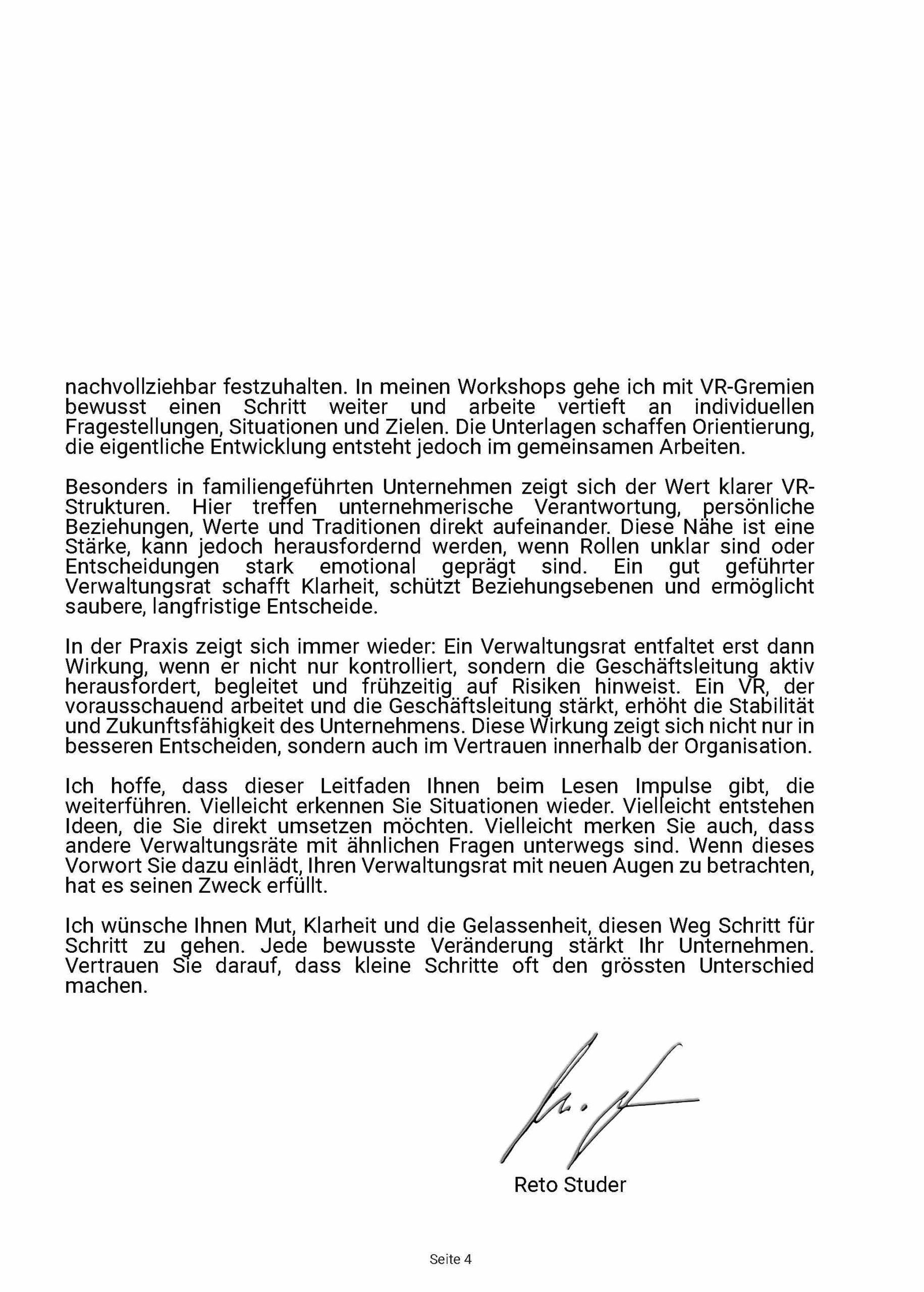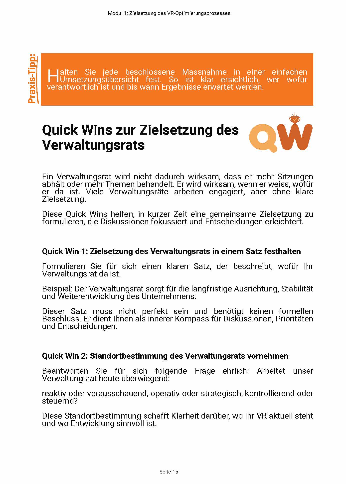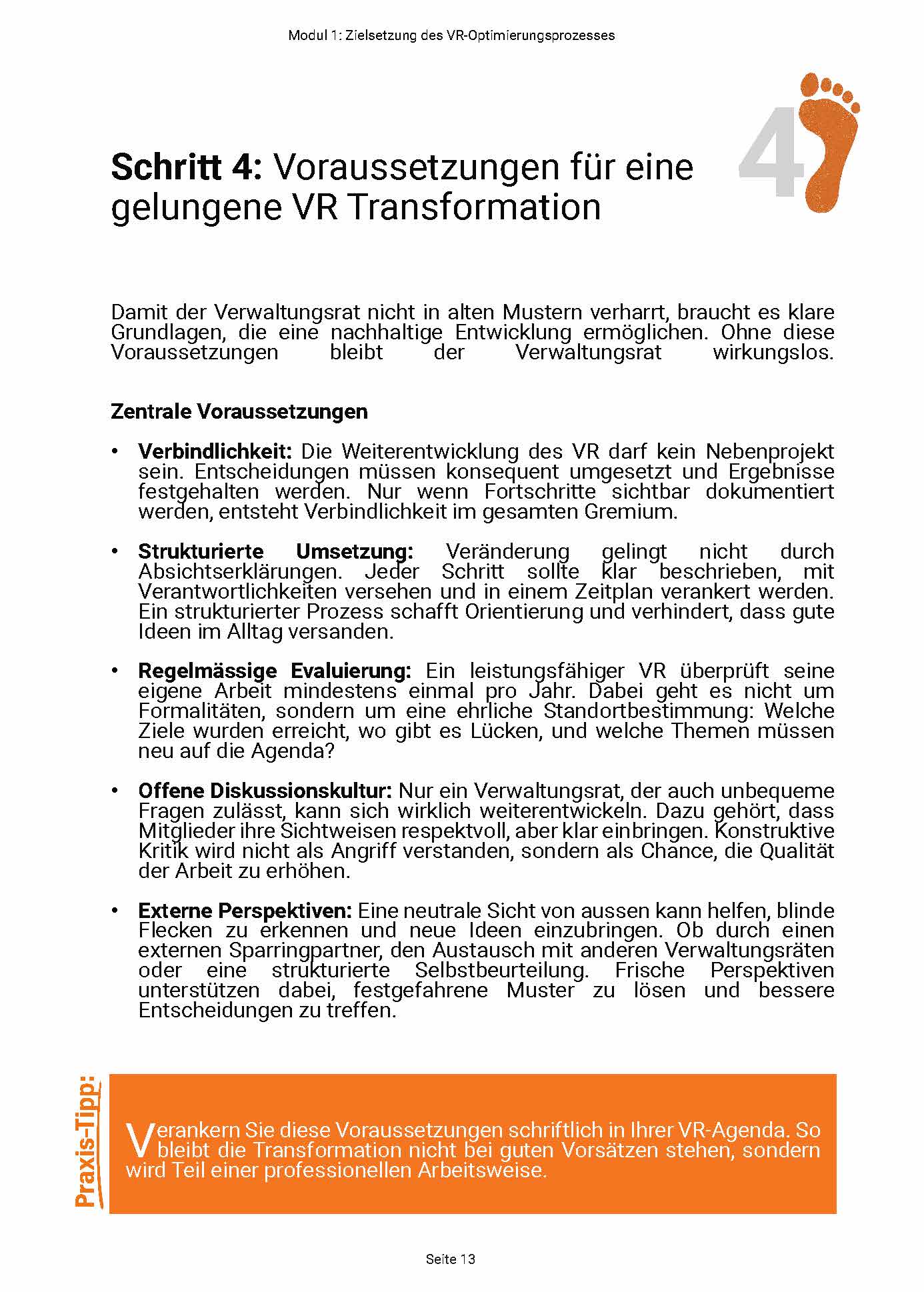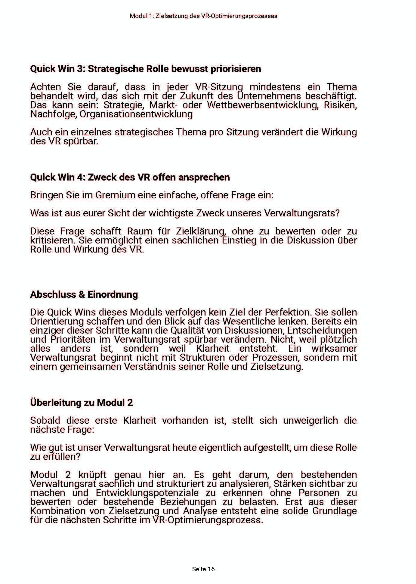 Das Buch ist ab Februar 2026 erhältlich und kann ab sofort vorbestellt werden. Es umfasst rund 100 Seiten, ist vollständig in Farbe gestaltet und bietet eine kompakte, klar strukturierte Übersicht über die acht Module. Jedes Modul enthält eine verständliche Schritt für Schritt Anleitung, eine anspruchsvolle Case Study sowie Quick Wins für die direkte Umsetzung im Alltag. Ergänzend steht ein Downloadbereich mit über 25 Vorlagen zur Verfügung, welche die praktische Anwendung im Verwaltungsratsalltag unterstützen.