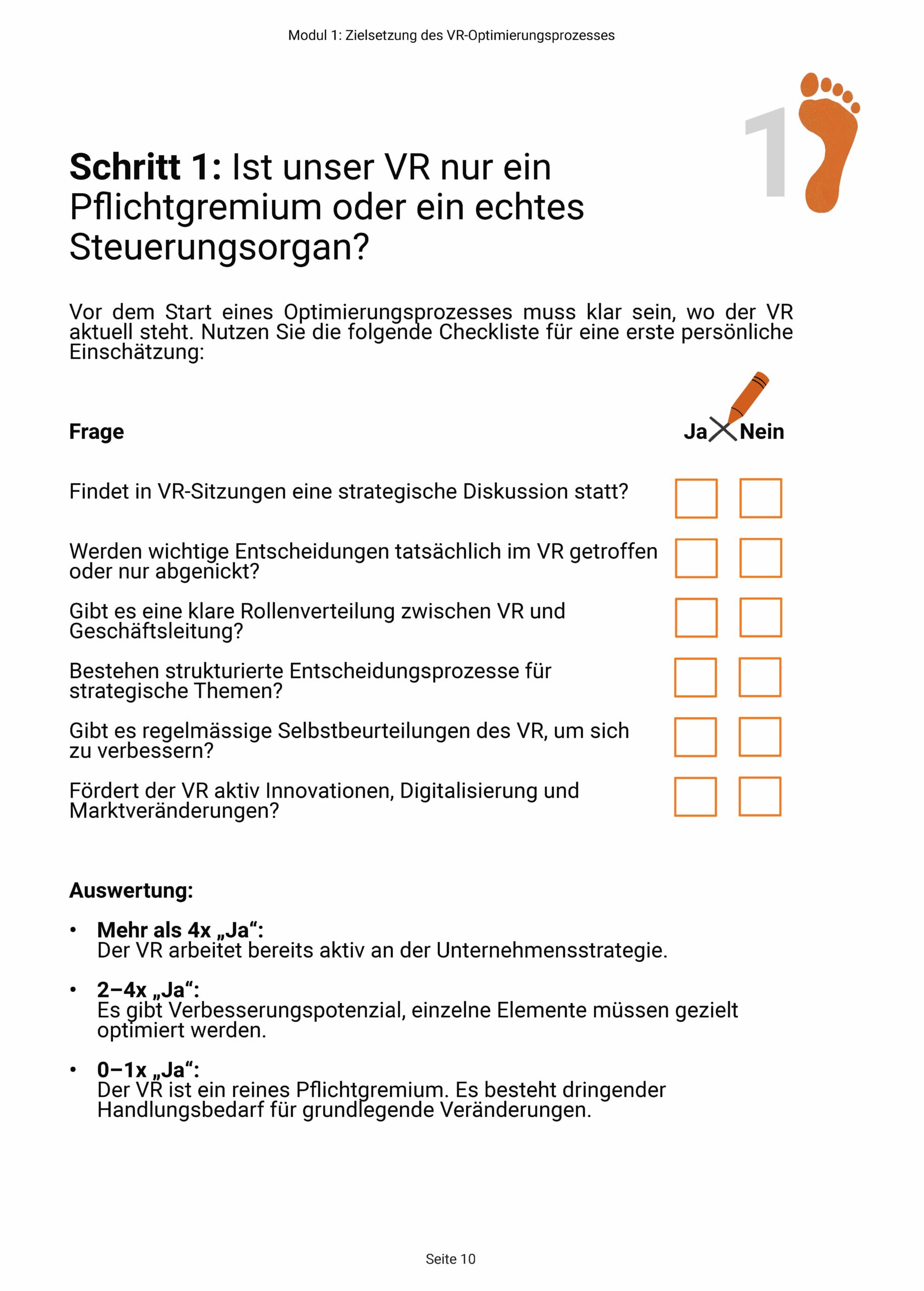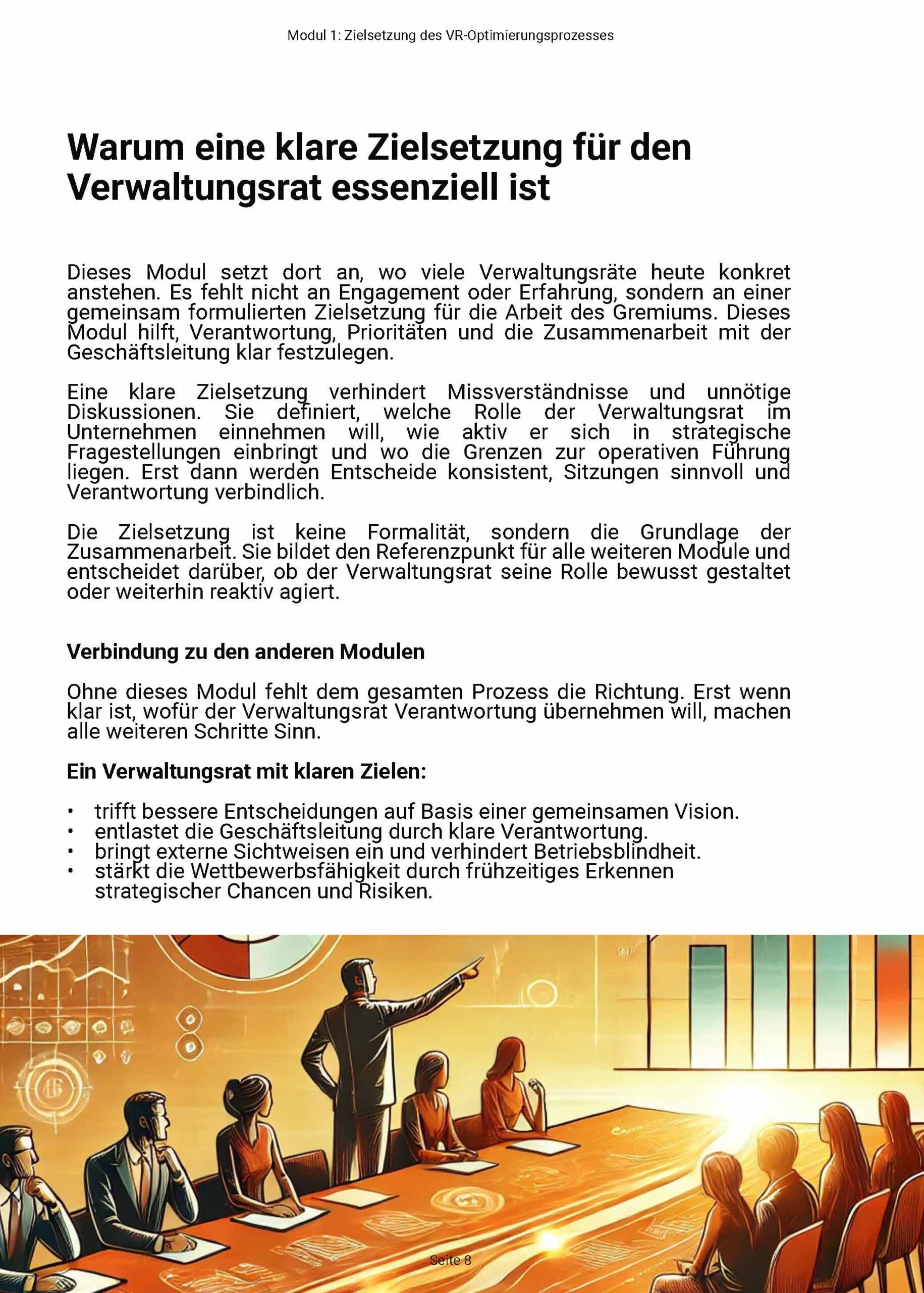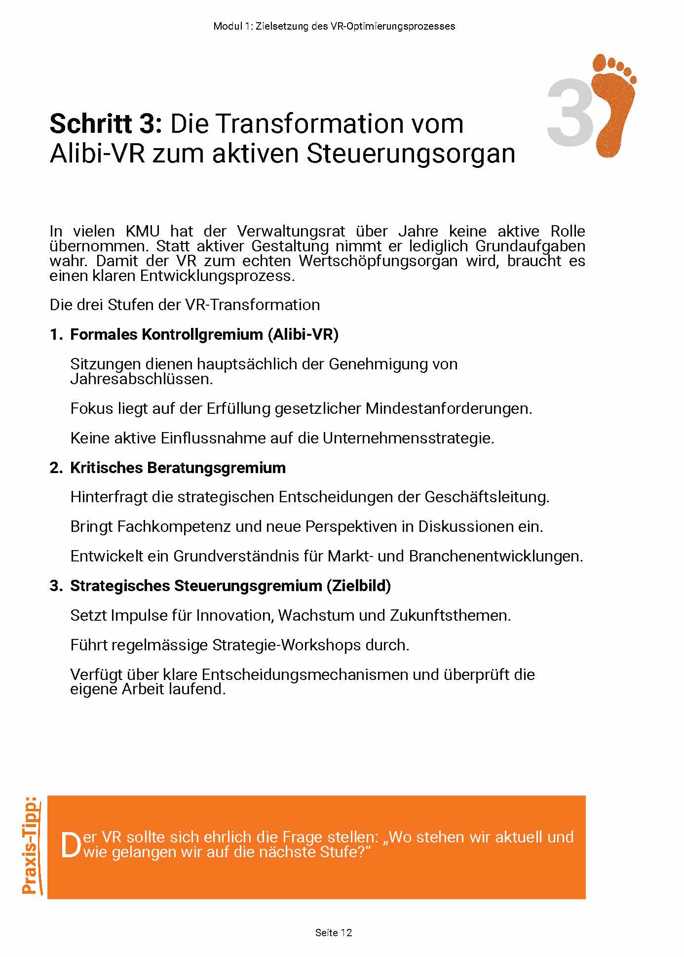 Vom Pflichtgremium zum Mehrwert ist ein praxisnaher Leitfaden, der Schritt für Schritt zeigt, wie ein Verwaltungsrat ohne funktionierende Struktur zu einem wirksamen Gremium wird. Verständlich, klar aufgebaut und so gestaltet, dass jedes KMU sofort starten kann, unabhängig vom aktuellen Stand.